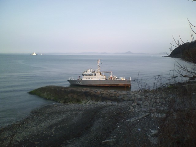 沖合いにはサルベージ船があり、何か作業をしていました。